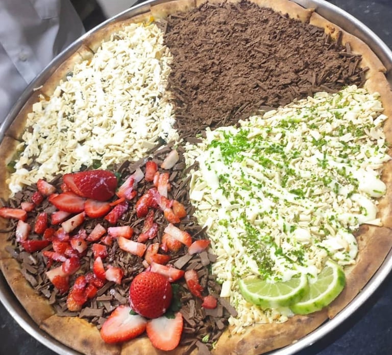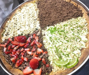 A nossa pizzaria oferece uma excelente qualidade de pizzas doces e salgadas. Os sabores são variados e deliciosos, agradando a todos os gostos. As pizzas salgadas são preparadas com ingredientes frescos e de alta qualidade, resultando em um sabor incrível. Já as pizzas doces são uma verdadeira tentação, com coberturas deliciosas e irresistíveis. A massa é sempre fresca e bem assada, garantindo uma experiência única de sabor e textura. É o lugar perfeito para quem busca uma pizza de qualidade, seja ela doce ou salgada.